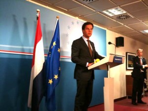 Premier Mark Rutte tijdens persbriefing, 21 juli 2011